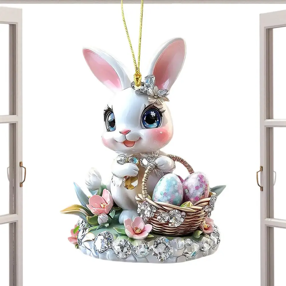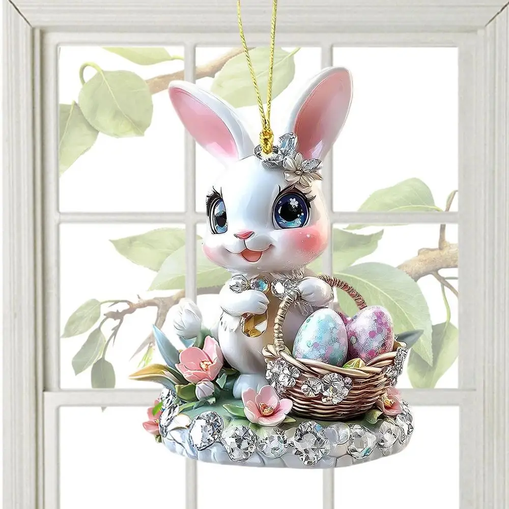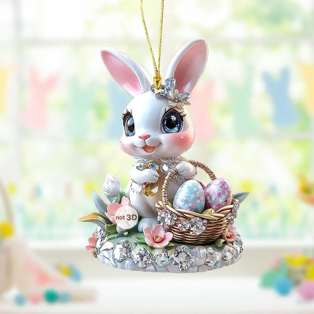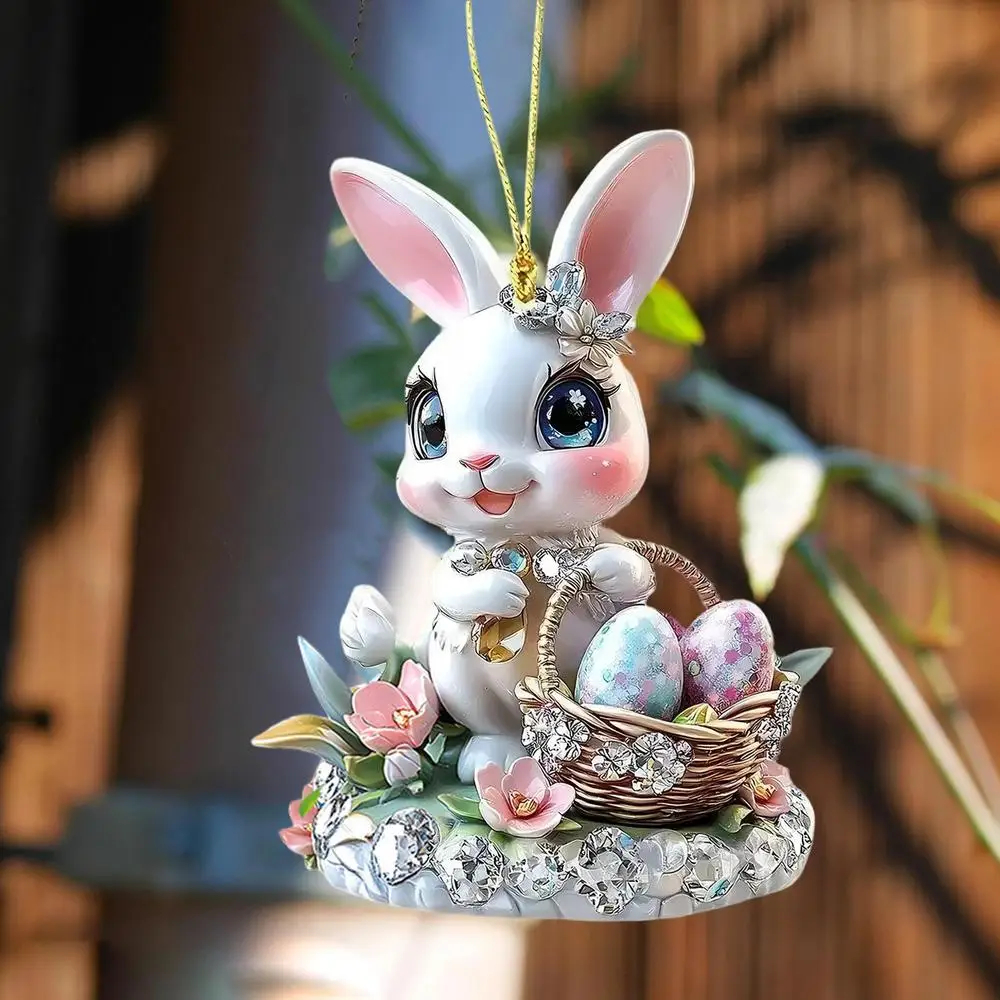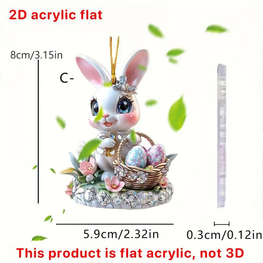 1PC Easter Bunny Egg Acrylic 2D Flat Pendant Keychain Car Rearview Mirror Decoration Backpack Small Hanging Party Home Decor