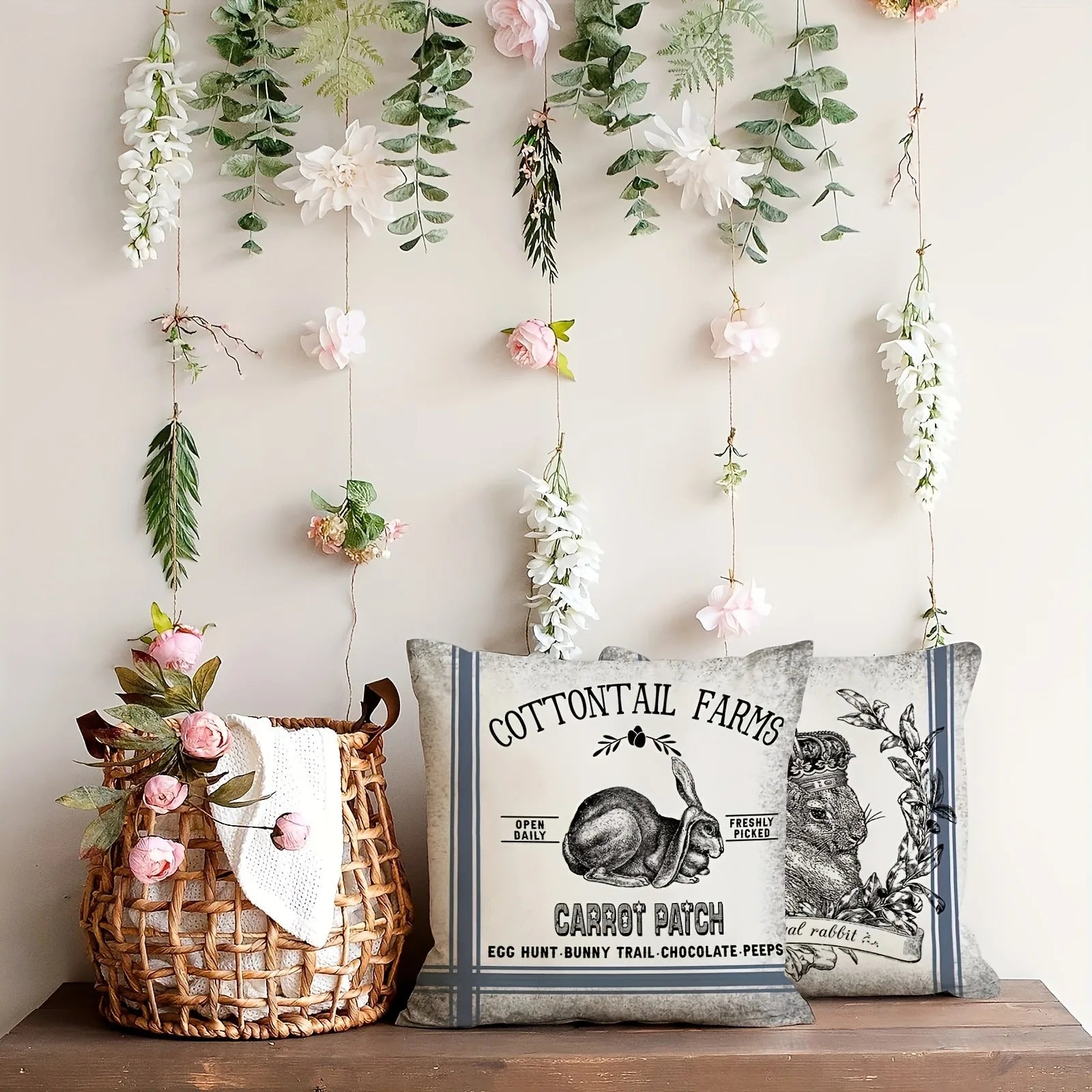 Easter decoration pillow cover, crown rabbit pattern design, sofa cushion cover, country farmhouse home room decoration