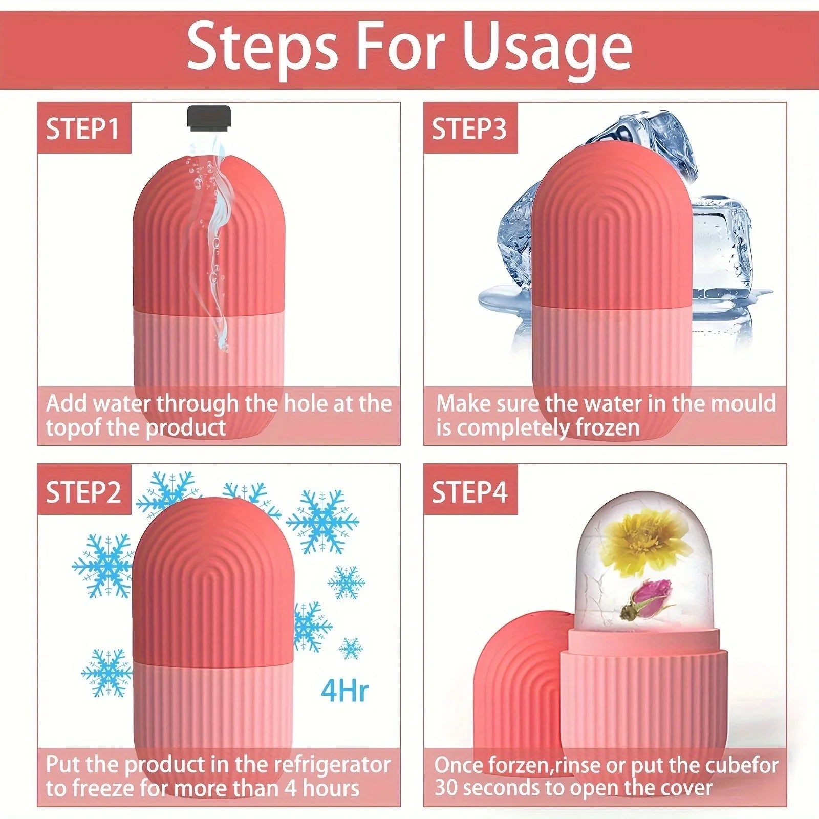 🙌🏼 EASY TO USE: Fill the ice roller massager mold with water. Freeze in refrigerator for more than 4 hours,when using it apply the ice to your skin in 30 second intervals in circular motions. For optimal results, It is recommended to use 1 or 2 times a day