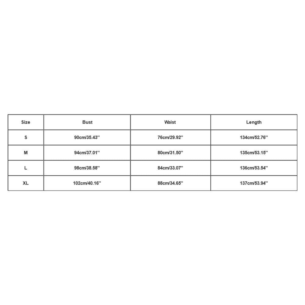 | Size:XL | Bust:102cm/40.16'' | Waist:88cm/34.65'' | Length:137cm/53.94'' |