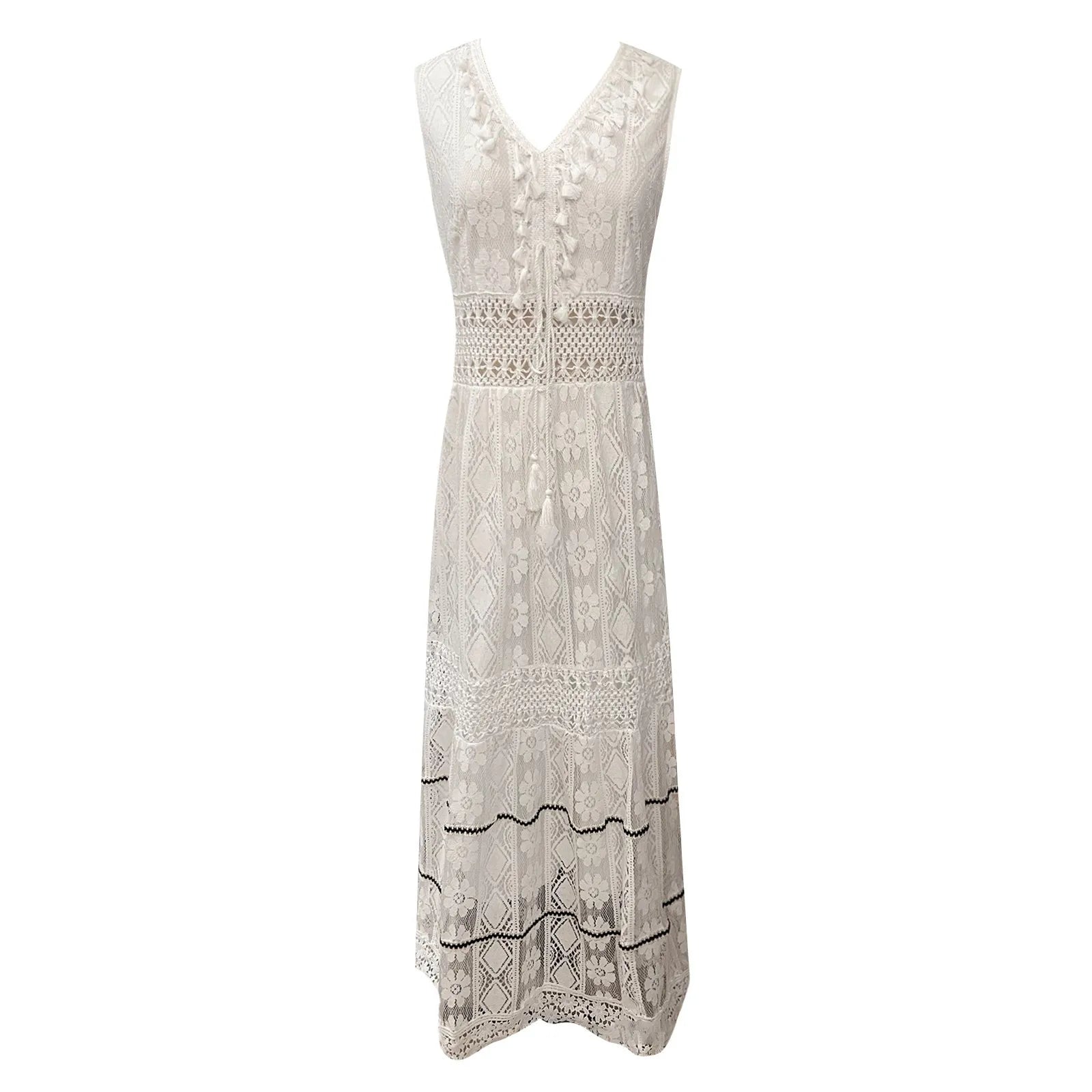 Ladies Bohemian Holiday Lace Sleeveless Swingle Casual Fashion Dress Features: